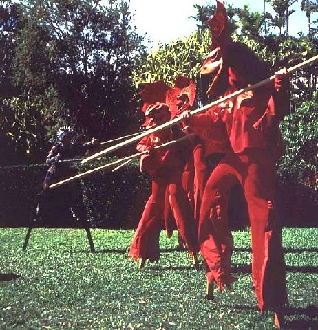 A trio of Indonesian nature spirits assume physical form in order to combat malevolent supernatural forces. Self-willed beings, these dragon spirits aren’t under the command of any local sorcerers, but apparently seek out evil on their own, doing battle armed with long staves and their own mystical powers. Although popular with the local populace, the dragon spirits efforts are less well liked by the Muslim Indonesian government, especially since the spirits operate without regard for local laws and religious regulations.