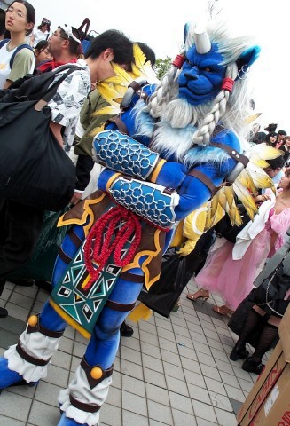 The Lion of Buddha claims to be a shishi, a divine being charged with guarding Buddhist shrines, temples, and holy places. Hailing from China, he has abandoned the mainland to travel the Pacific Rim (as can be seen here, where his is attending a meeting of Asian metahumans in Japan), defending the weak and defenseless from evil in all shapes and forms. Supernaturally strong, the Lion is skilled in hand-to-hand combat, and a headbutt with his (blunted) horn has been known to dent steel. The Lion's roar will send ghosts fleeing, and he can breathe fire, lightning, and even vast clouds of lotus petals—the latter putting people to sleep instead of harming them. The Lion has also been seen to produce a huge golden lotus blossom from time to time—this blossom can deflect attacks of all kinds, and was once seen to stop dead a powerbolt from Doctor Destroyer.
