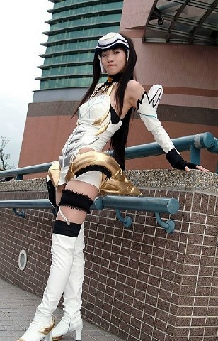 Sokuryokudo (lit. speed or velocity), takes a short breather while on patrol. Her costume shows obvious armored inserts over the abdomen, while the gold device around her hips apparently provides stability and balance when she hits her top speeds (clocking in at several hundred miles an hour). As of yet, no one can figure out how she can run so fast in high-heeled boots.