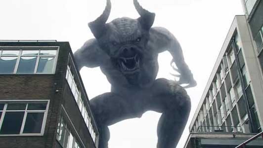Jedediah "The Devil" Jones. The unfortunate Mr. Jones is seen here during his rampage through the business district of Goodheart, Alabama. Less a supervillain than a public safety hazard, Mr. Jones uncontrollable transformation into a 50 foot giant of demonic appearance when drunk is as of yet unexplained. Twice imprisoned by the Southern Knights, each time Jones was able to gain access to sufficient alcohol while in custody to achieve his transformation and escape. Mister Jones' current whereabouts are unknown.